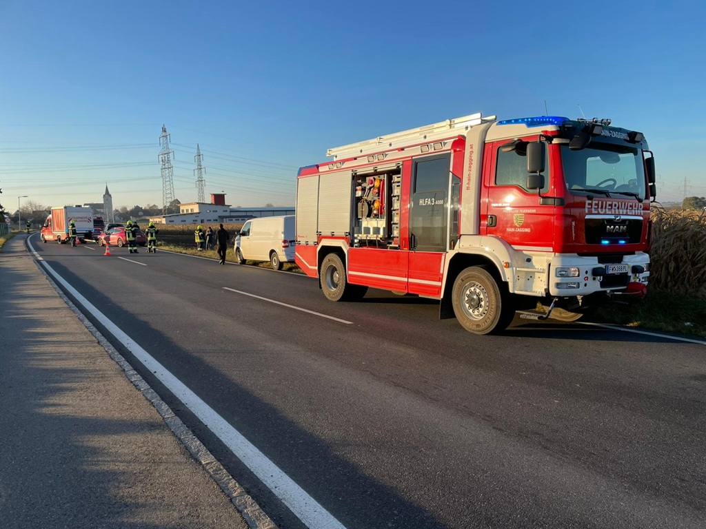 Am 7. Oktober wurden wir um 12:38 Uhr zu einem Einsatz „T2: Verkehrsunfall – Menschenrettung“ nach Kleinrust gerufen. Ein Auto war von der Fahrbahn abgekommen und hatte sich über die Böschung hinunter überschlagen, kam aber glücklicherweise auf den Rädern zu stehen.
