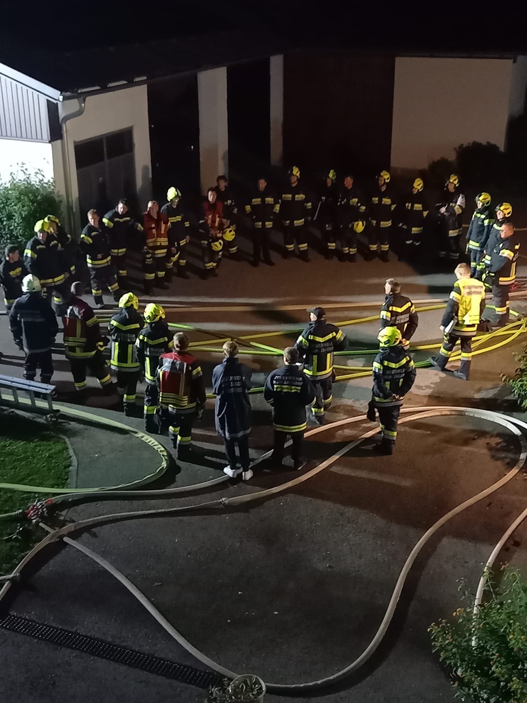 Als die Feuerwehren kurz nach 19:00 Uhr am Übungsort eintrafen, erkundete der Einsatzleiter zuerst die Lage: eine Person vermisst, mehrere Gasflaschen im Gebäude und am Dachboden und ein Übergreifen der Flammen auf benachbarte Objekte drohte. Nachdem alle Einheiten den Einsatzbefehl erhalten hatten, war die erste Löschleitung schnell vorbereitet und die Person rasch gerettet. Zeitgleich wurden Wasserversorgungen vom Hydranten und dem Löschbrunnen aufgebaut, dadurch konnte mit einem umfassenden Löschangriff gestartet werden und so nach etwa 40 Minuten das Übungsende bekanntgegeben werden.