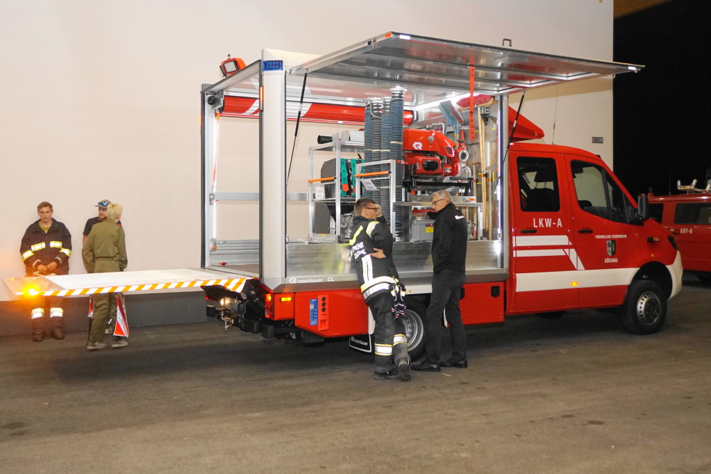 Mit einer Ladebordwand, klappbarer Seitenwand und / oder Rollladen, verschiedenen Rollcontainern, Rundumbeleuchtung, großem Ladevolumen, etc. und einem großen Mannschaftsraum kann dieses Versorgungsfahrzeug sämtliche erforderlichen Aufgaben universell erbringen ...